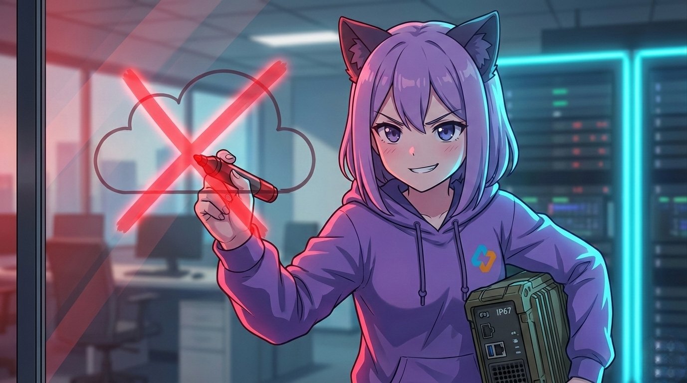 Леночка рисует на маркерной доске гигантский жирный крест поверх схемы с облачными GPU. «Гениальный план: стримить гигабиты несжатого видео через цеховой Wi-Fi в облако. А потом искренне удивляться, что пинг прыгает до 800 миллисекунд из-за наводок от сварочных аппаратов, и конвейер уезжает дальше, пока инференс рожает ответ. Плюс, если экскаваторщик Вася на территории перебьет оптику, весь ваш умный завод мгновенно превратится в тыкву. Только хардкорный локальный Edge. Только TensorRT и INT8-квантование в пылевлагозащищенном ящике стандарта IP67».